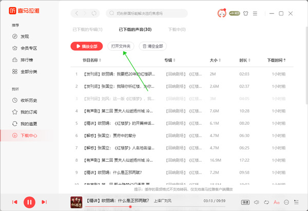 我们可以进入软件的下载中心点击【打开文件夹】将下载的音频文件找到