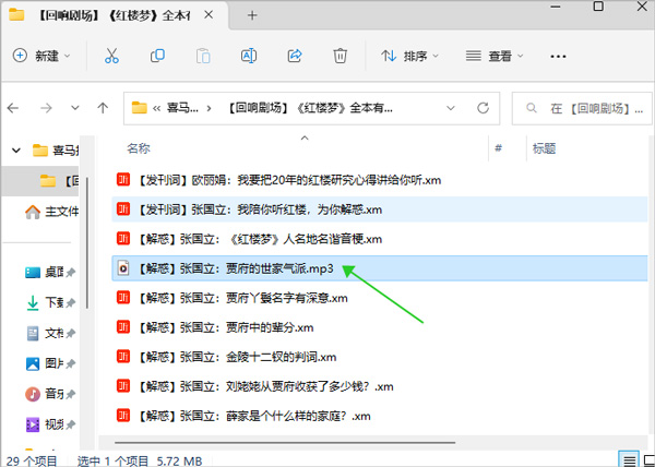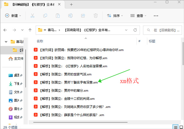 在打开的文件管理器中我们发现下载过来的是xm格式的音频文件