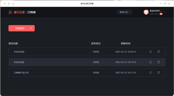 接着就会打开喜马拉雅云剪辑窗口,此窗口就是创作中心,用户可以点击【开始创作】来创作作品了
