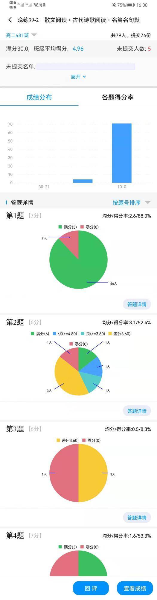 显示【回评】意思是已完成批阅,点击可查看或修改分数;