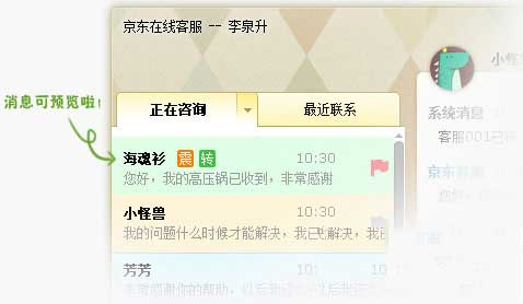 增加顾客最后一条消息预览功能让您及时感知顾客动态