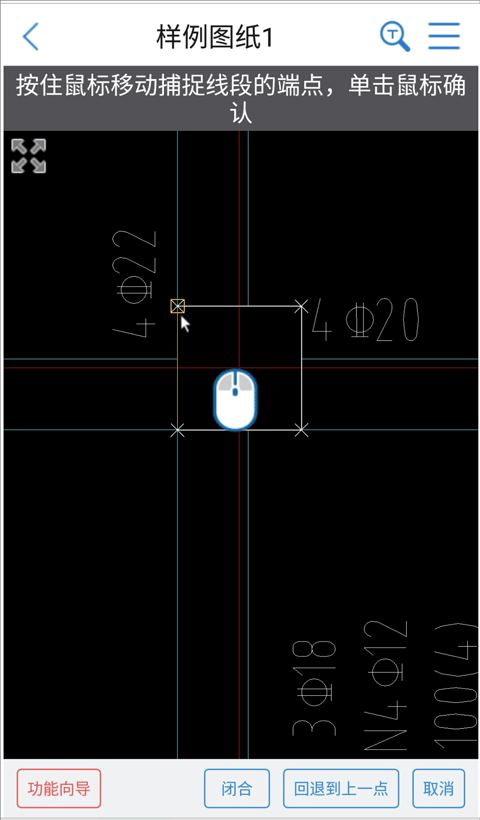 2、运用虚拟鼠标精准捕捉柱子的4个点,完成闭合后选择右下角的“测面积”
