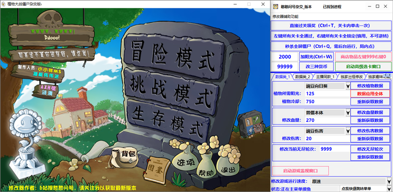 植物大战僵尸杂交版修改器(点击查看)由“憨憨问号”创作,提供了安装包、存档、功能修改等辅助工具。