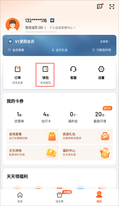 1、打开app在我的页面选择“钱包”