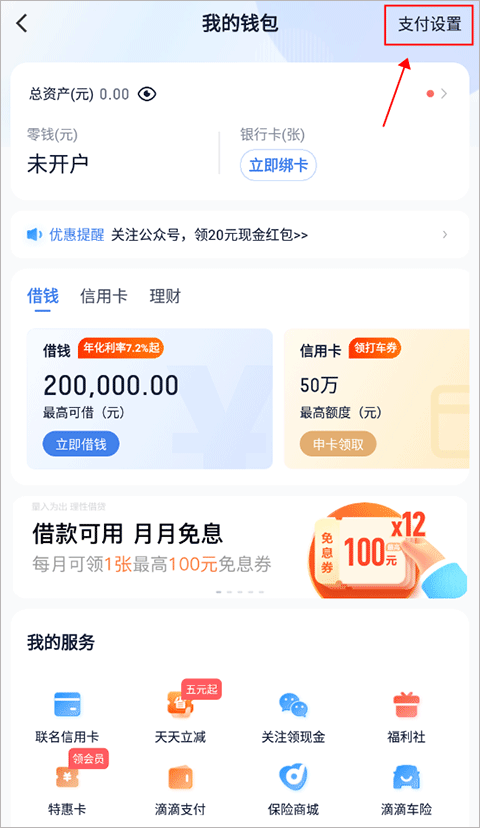2、进到我的钱包后,点击右上角的“支付设置”
