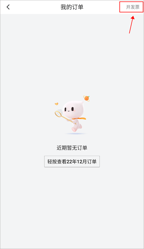 2、接着进到订单界面,如近期有打车记录,可以当前界面开发票,如果没有就需要点击右上角的“开发票”