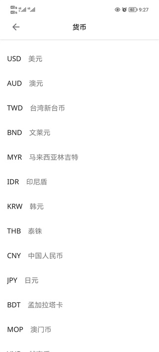 3、然后就可以根据自己的需求来选择货币单位了。