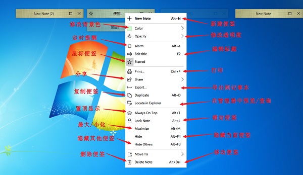 5、支持隐藏、最小化、锁定、置顶指定的便签。如此一来可以防止有人偷看,防止重要内容被删除,防止便签被遮住。