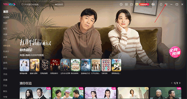1、在电脑上运行优酷,进入优酷主页后,点击主页右上角的【菜单】选项,即三条横向的图标。