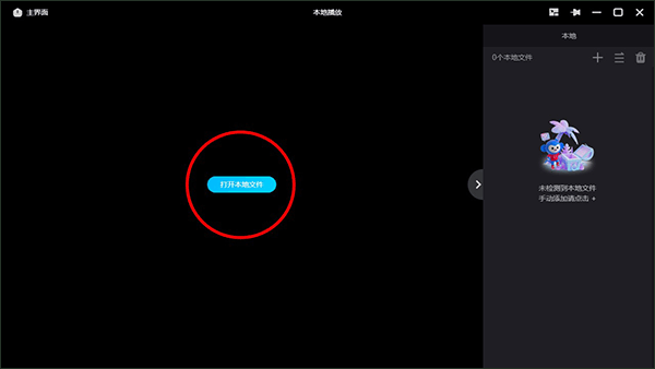 2、在弹出来的播放界面点击中间的打开本地文件。