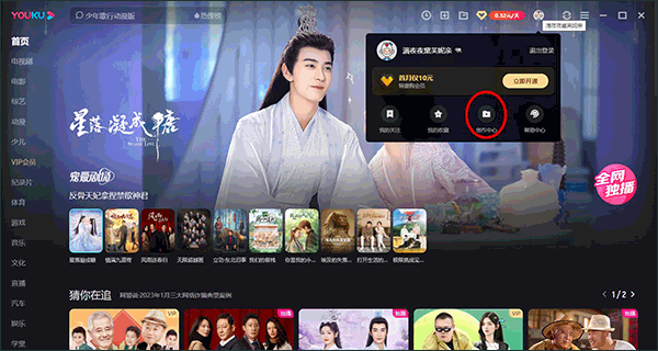 1、打开优酷播放器,点击右上角用户头像,在弹出的列表内点击创作中心。