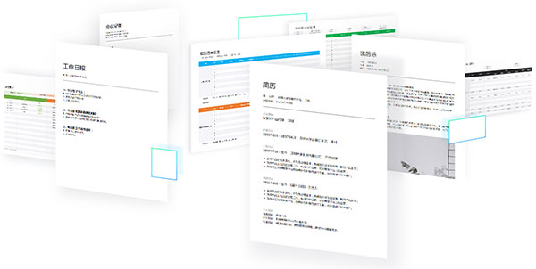 支持工作日报、会议纪要、简历、工作日程和报名签到等模板。