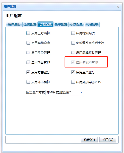 系统维护——系统管理——用户配置——功能配置——启用多机构管理