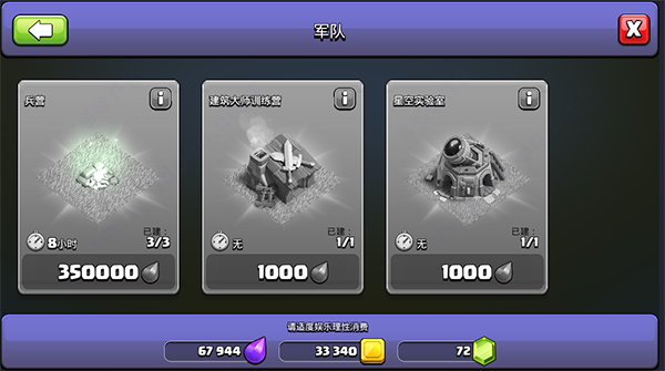 1、【加速建造四个训练营以及三个王】在战斗的时候可以使用宝石加速建造,之后主要负责建造巨人,小黄人,法师以及弓箭手,之后主要负责偷家,那么赢得奖杯也是非常快的。