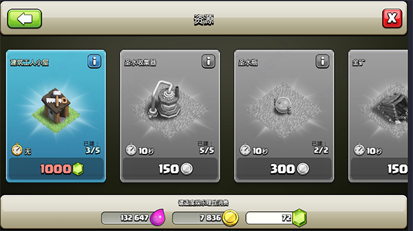 4、圣水收集器:圣水收集器可以从村庄内的地下圣泉中,收集圣水。升级玩家的圣水收集器以使圣水产量最大化。