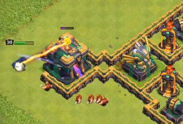 1、加农炮:加农炮很适合防御单个目标,升级加农炮可以增强火力,防御建筑在升级时,不能开火。