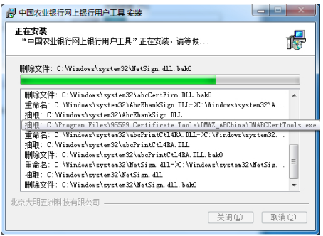 3、当与农行服务器进行连接,并完成下载之后,会自动进行K宝软件的安装;