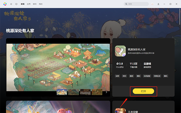 2、选择对应游戏双击“打开”,这个打开是不需要安装就可以玩的哦。