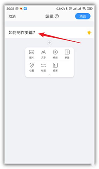 1、到此,一篇综合性的文章就编辑完成了,点击右上角的预览。