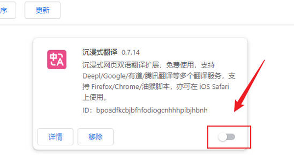 5、加载完插件之后点击插件卡片右下角开启翻译功能