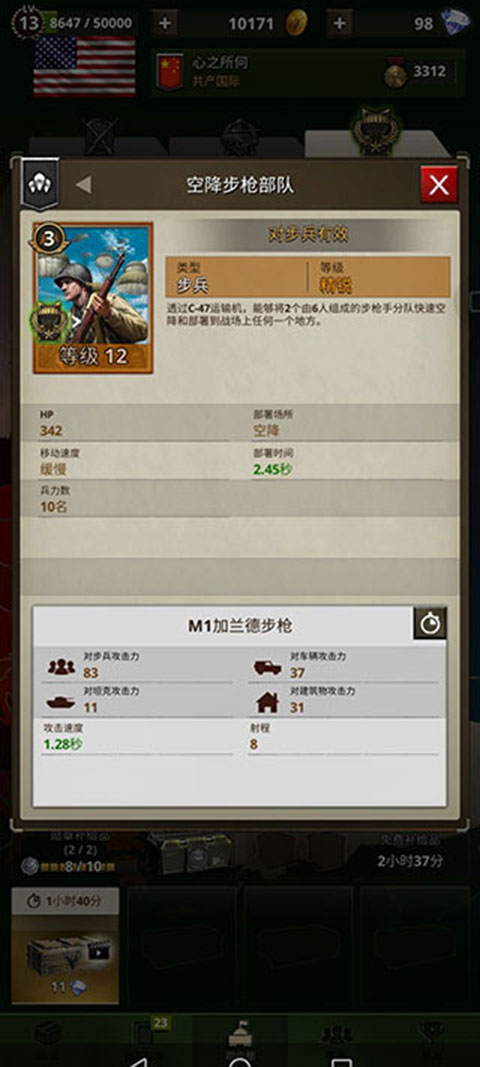 将空降流完善到最后的补牌,如果没有他,空降流永远缺一角。士气高涨的英雄甚至都可以不要但是空降步枪连队必须存在。可以说是勇猛之路二战游戏中浑水摸鱼的好能手,前面说过,空降部队虽然有反坦克武器,但是自身面板很脆四个人虽然是优势,但是真的是打不动任何精锐步兵。这个时候就要依靠人多力量大了从天空中再降下来,两个六人组成的步枪连队可以快速的压场击杀对面的精锐步兵然后配合上空降部队附带的医疗兵一下子可以把压场面的效果拉到最大。而且防御塔比较呆打死一个人之后就很容易把攻击目标放到其他步兵地方相当于在变相中为存活的空降部队提供保护让空降部队有更多的机会能打出m1无后坐力炮前面说过也可以为残血的坦克吸收前排火力伤害。总之,用处很多在空降联队手中,更是能玩出花。拥有极高上限的部队还有一个小秘诀如果玩人海战术的话可以利用此部队还有空降部队来达成人造D -day非常的有意思嗯,如果步兵联队玩建筑的话就不需要用这张牌了还有这张牌可以扛防御塔的伤害配合上爆破工程兵扔出自己的背包炸弹在开局的时候打突袭十分有奇效也算是出其不意了。