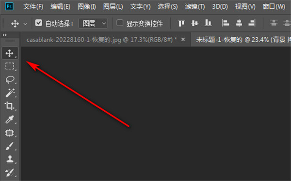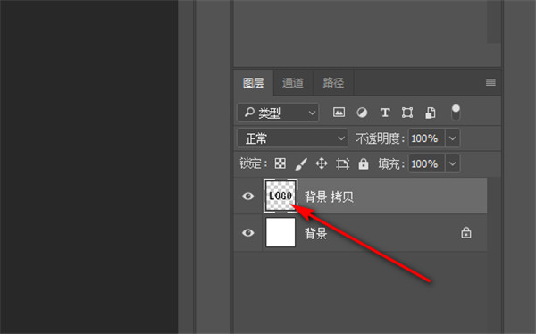 4、logo载入选区后,点击移动工具或者按移动快捷键v,就可以将选区中的内容拖到其他窗口了。