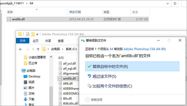 9、解压下载来的破解文件,小编这里是32位的操作系统,所以要复制32位破解补丁“amtlib.dll”[位置:“32位破解补丁”文件夹下](如果是64位的同学则选择“64位破解补丁”文件夹里的“amtlib.dll”);