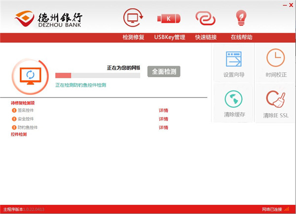 全面检测网银环境,并支持一键修复,让你的电脑达到网上银行最优的配置。