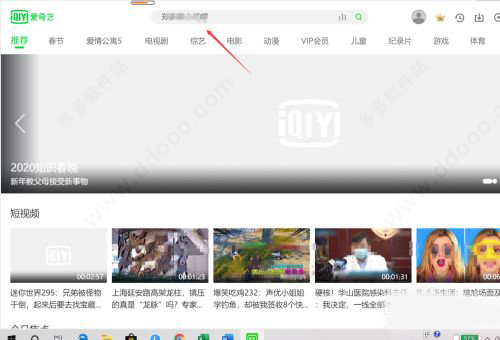 首先打开爱奇艺后,在搜索的位置输入自己想要的视频关键字。