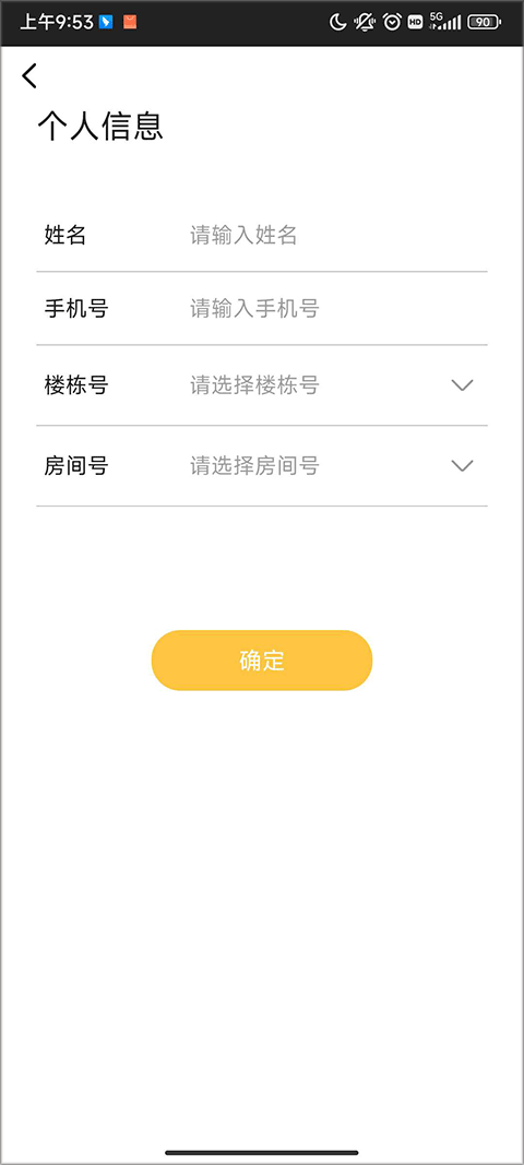 4、完成相应的个人信息填写,姓名、手机号、楼栋号、房间号。