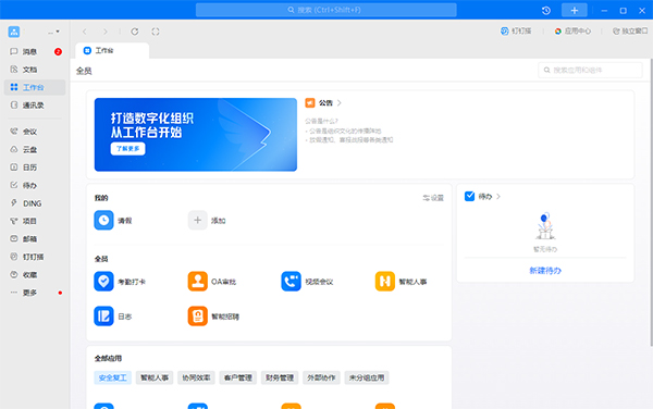 构建涵盖文档、钉闪会、Teambition、表格、白板、脑图、知识库等能力的产品矩阵,帮助个人和组织提升数字生产力。