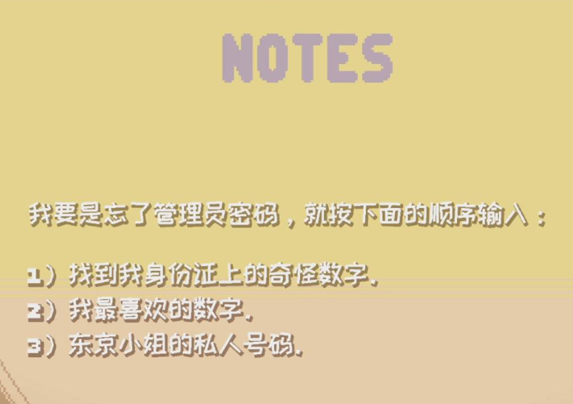 1、破解密码需要找到身份证上的奇怪数字、最喜欢的数字和东京小姐的私人号码。