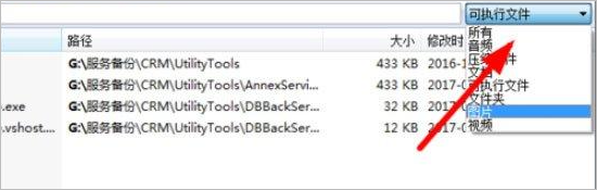 6、点击右边的下拉框,可以快捷搜索不同类型的文件。