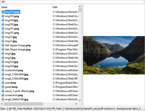 在 “Everything” 中,打开查看菜单,选择中等图标,大图标或超大图标,又或是按住 Ctrl 键并使用鼠标滚轮缩放以从详情到超大图标切换视图。
