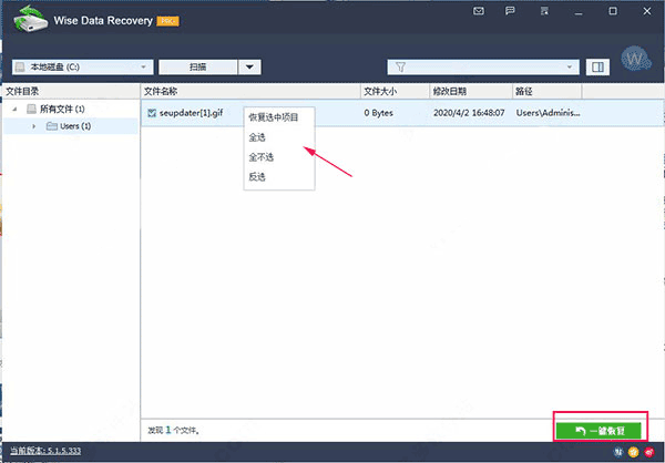 扫描结果太多,找不到想要恢复的文件?Wise Data Recovery 还支持文件类型过滤,一键选择只需要显示的文件类型。