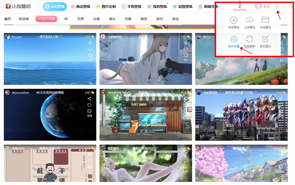 1、打开360小鸟壁纸软件,在“设置”里点击“软件设置”