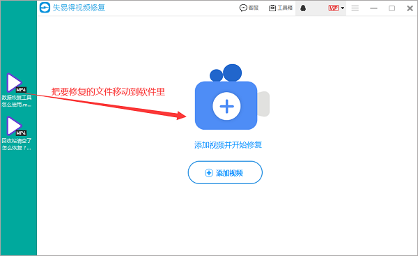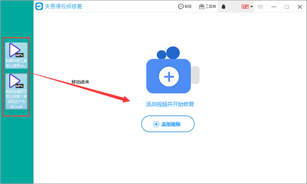 第一步:运行失易得视频修复,然后把我们要恢复的视频移动到软件里。