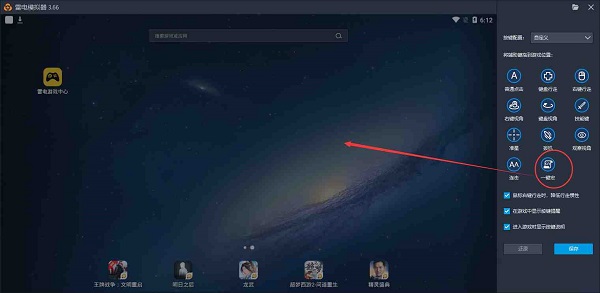 2、游戏成功启动后,点击模拟器右侧工具栏按键按钮(键盘样子)进入按键设置界面;按F12可以查看雷电官方设置的默认按键。