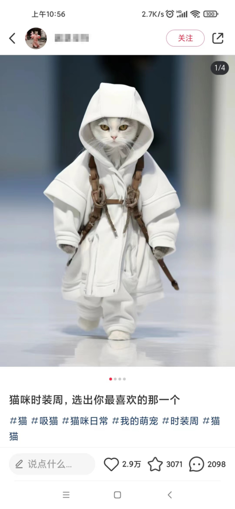 Animal秀,小红书上的明星项目,每次发布都轻松收获数万点赞!这不仅仅是猫咪走秀,更是一场独特的时尚盛宴,一只猫穿着时尚衣物,优雅地走上T台。这一别开生面的表演,让人眼前一亮,仿佛穿越到一个梦幻的时尚世界。
