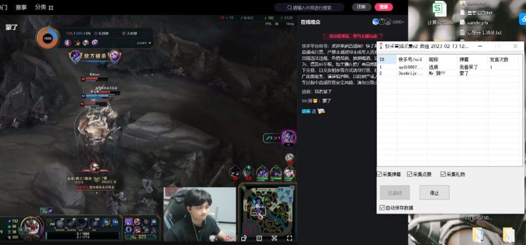 一款针对KS直播间进行采集发言,弹幕,DZ,礼物,互动等内容的软件